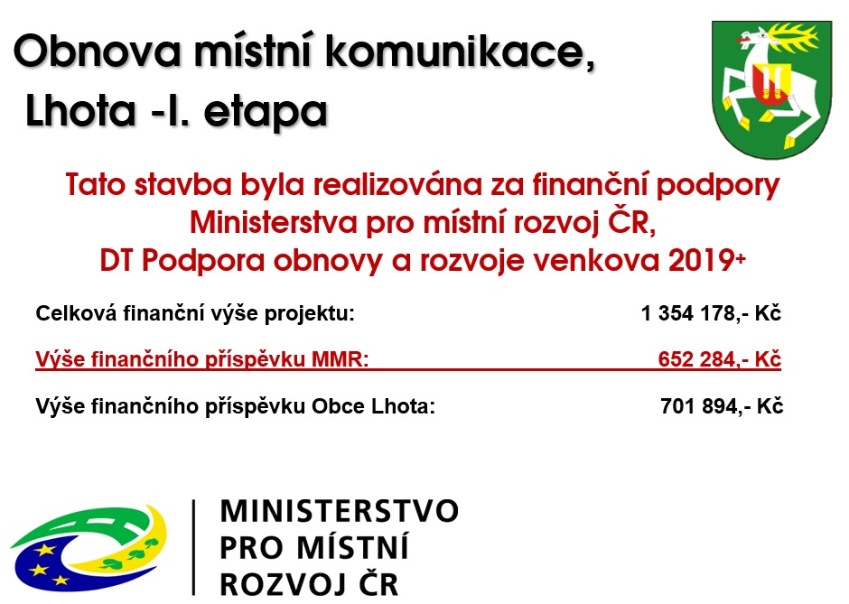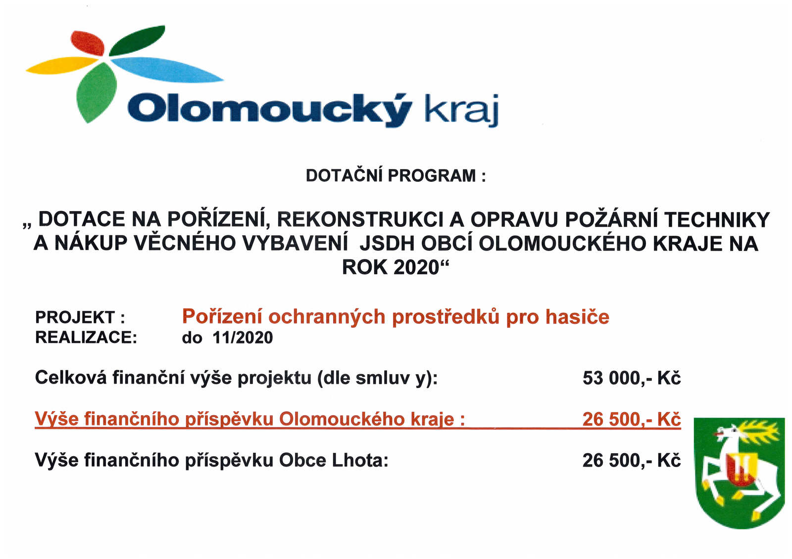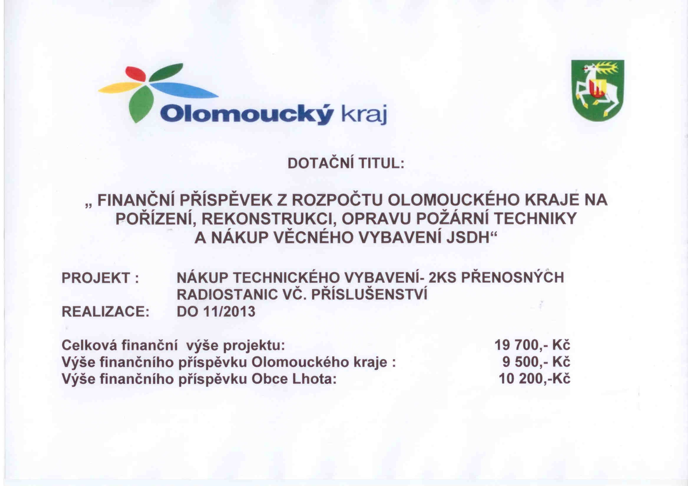 "Pořízení, technické zhodnocení a oprava požární techniky a nákup věcného vybavení JSDH Lhota"